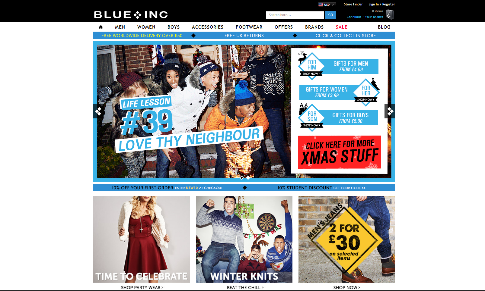 Одежда для молодежи от Ben Sherman, Police, NY и других брендов: яркие цвета, необычный фасон, оригинальные орнаменты. Впрочем, на сайте есть и более простые модели, так что можно найти одежду, аксессуары и обувь на любой вкус.